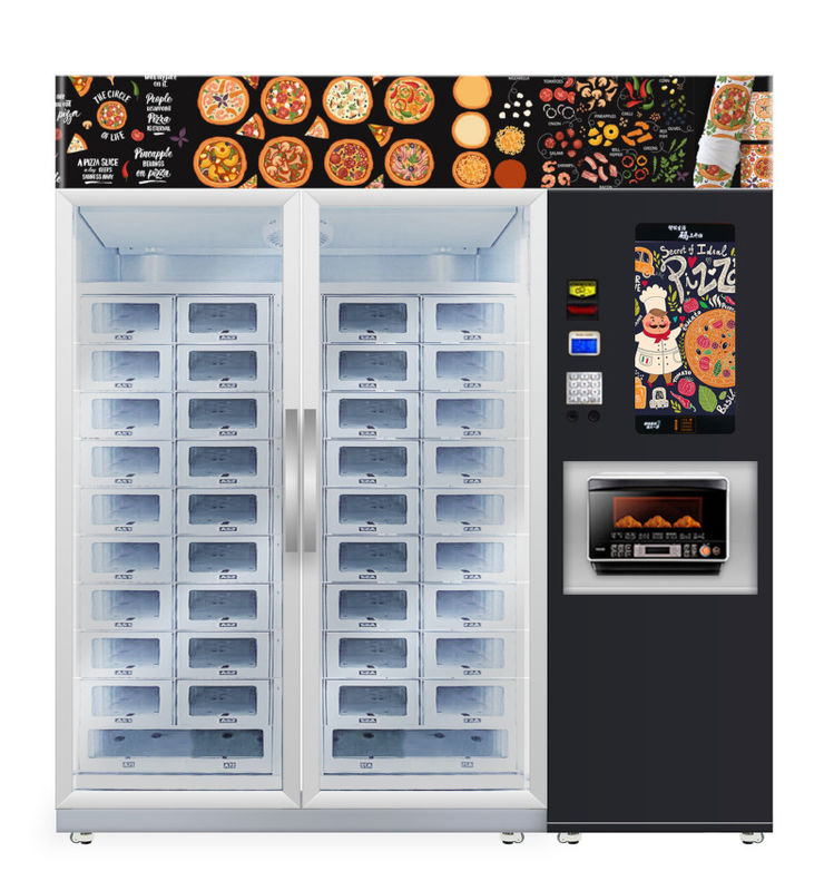 Automat do pizzy z mikrofalą, automat z szafkami. Klienci mogą wziąć pizzę z lodówki i podgrzać ją w mikrofalówce.